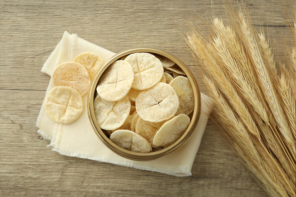 EKARISTI Never tickle a man’s ears with promises too great for your actions to correspond with them. Masih ingat, bagaimana ratusan tahun lamanya ekaristi dirayakan? Pastor membelakangi umat, pada konsekrasi membungkuk dan mengucapkan atas hosti dalam bahasa latin: “Hoc est enim corpus meum.” You should trust in God enough to believe that you couldcross the seas on a bare plank if there were no shipAmat penting menyadari bahwa Yesus mengucapkan kata-kata itu tidak kepada roti dan anggur, tetapi kepada para rasul sambil bertindak menyerahkan pecahan roti dan piala itu kepada mereka. Bahaya: close up pada hosti. Ekaristi adalah perayaan perobahan/konsekrasi dari satu kelompok menjadi umat kristiani, menjadi tubuhnya sendiri. Corpus Christi mysticum mempunyai dua arti: umat dan ekaristi. Gereja adalah umat Allah yang hidup dari tubuh Kristus dan dengan demikian makin menjadi tubuh Kristus (Ratzinger). Kalau kita makan roti dan minum anggur, terjadi pertemuan pribadi dengan Yesus yang bangkit. Realpraesenz dalam „mengenangkan aku“ umat tidak kembali ke perjamuan terakhir Yesus, melainkan yang tersalib menjadi hadir dalam peringatan sebagai Kristus yang bangkit. „Ambillah, inilah tubuhKu“. Dengan makan tubuh Kristus para rasul menerima persatuan paling erat dengan Kristus; sekaligus semua perserta perjamuan itu menjadi satu tubuh, yaitu tubuh Kristus. Dengan tubuhNya Yesus memberi hidup ilahiNya kepada para rasul/pada kita. (Akulah roti kehidupan) Sayang bahwa gereja menghilangkan lambang: makan dari 1 roti, minum dari 1 piala. Sebenarnya kita semua lapar dan haus pada arti, perhatian, cinta, hidup dll. Maka satu-satunya yang memuaskan: Allah memberi DiriNya (se-gala2nya) dalam Yesus. Komunio/Relasi Kita dengan Tuhan/Yesus setingkat dengan komunio/relasi kita dengan sesama; cinta pada Allah dan cinta pada manusia tidak dapat dipisahkan. Cinta pada Allah secara konkret dihayati dan dibumikan sehari-hari dalam pengalaman diakonia / koinonia dengan sesama. Mt 18:20 Di mana 2 atau 3 orang berkumpul dalam NamaKu, disitu Aku ada ditengah-tengah mereka. Kalau tak sempat bermisa, sebaiknya makan bersama. Ekaristi kita mempunyai tiga akar: 1) Cara Yesus makan: Mk 6:30-44 (Kamu yang membagikan ). Mt 11:19 = Lk 7:34 Lihatlah seorang pelahap dan peminum, sahabat pemungut cukai dan orang berdosa. Makan dan minum bersama merupakan Realsymbol kedatangan Kerajaan Allah. 2) Makan malam terakhir dimulai dengan roti, berakhir dengan piala. 3) Pengalaman dengan Yesus yang bangkit, seperti peristiwa di Emaus. Kebingungan murid-murid Emaus (Lk 24): roti dan anggur yang mereka sajikan kepada tamu mereka, diambil alih oleh Yesus sebagai lambang untuk menyerahkan dirinya kepada mereka. Ekaristi sendiri merupakan lambang perjamuan surgawi (Bdk Lk 15) Perintah untuk melaksanakan Ekaristi ada 1x pada Lk 22:19 dan 2x pada Paulus: 1 Kor 11:24-25 1 Kor 11:27 Barangsiapa dengan cara yang tidak layak makan roti ini dan minum cawan Tuhan, ia berdosa terhadap tubuh dan darah Tuhan. Cara yang tidak layak: 1 Kor 11:21 yang seorang lapar dan yang lain mabuk. Bagi orang-orang Yahudi, tempat kehadiran Allah adalah bait Allah di Yerusalem, lebih-lebih yang mahakudus. Yesus: Akulah tempat kehadiran Allah. Kemudian para murid memahami dirinya sebagai “Bait Roh Kudus”. Perbedaan Gereja Barat dan Timur dalam soal kapan konsekrasi terjadi: Gereja Timur menghayati epiklese (doa permohonan, supaya Roh Kudus turun) sebagai saatnya. Dalam gereja barat selama dua abad pertama bacaan institusi Yesus termasuk ibadad sabda: Perayaaan ekaristi seluruhnya dianggap sebagai konsekrasi. Siegfried Zahnweh, SJ